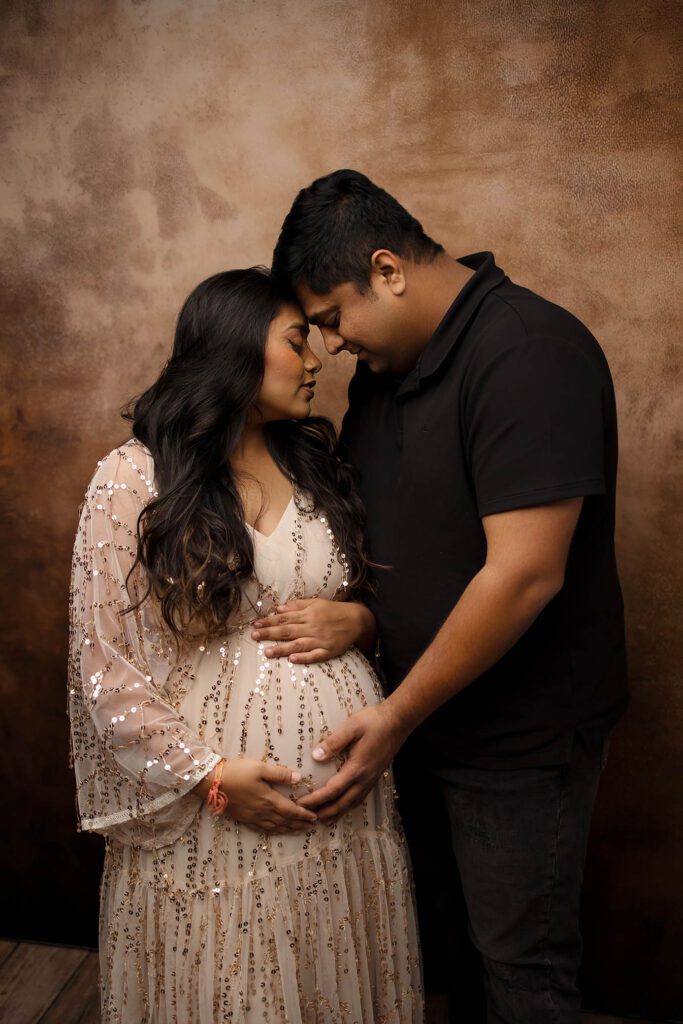 My new studio was finally ready, and I couldn’t wait to start creating beautiful pregnancy photos again. When Hiral and her husband arrived for their session, she was 36 weeks along. She looked amazing and was glowing with joy.
