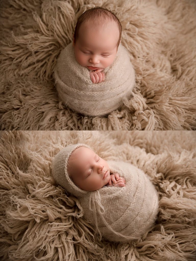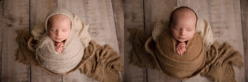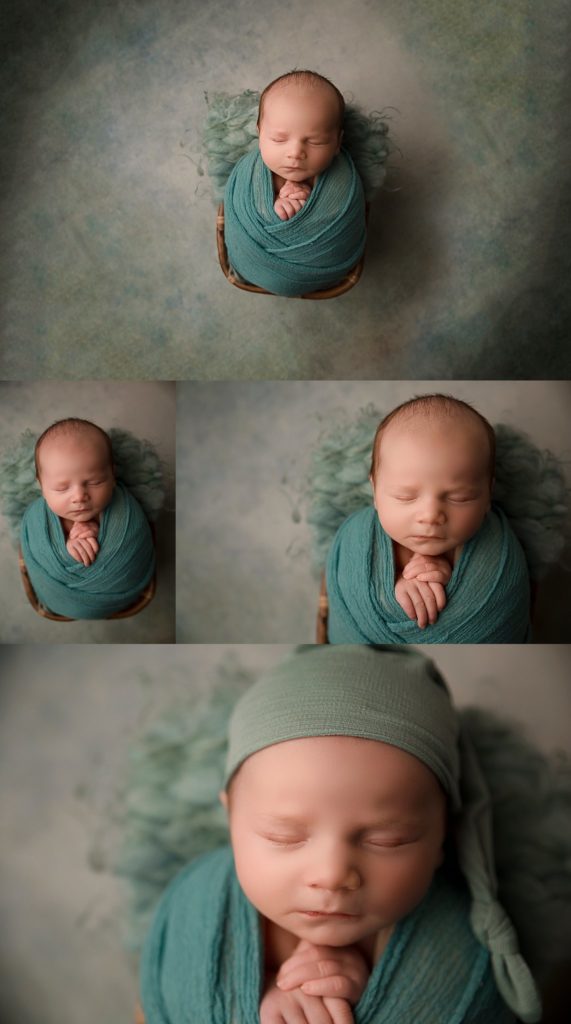 I always start my newborn sessions with a baby wrapped so that they can get more comfortable and relaxed. Then as we unwrap, I then go to all the cute naked shots.