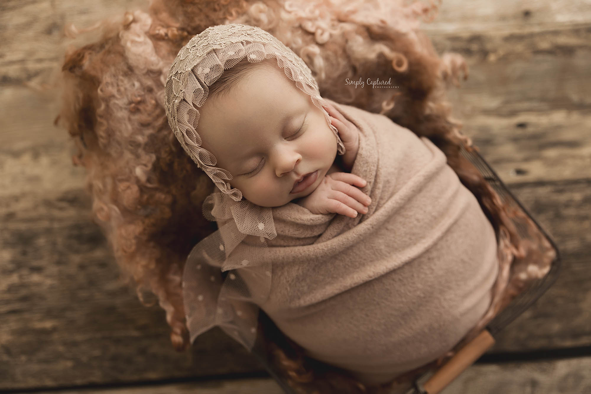 In my newborn sessions, I usually start with wrapped posing first. This gives baby time to get used to being moved around and she stays nice and cozy.