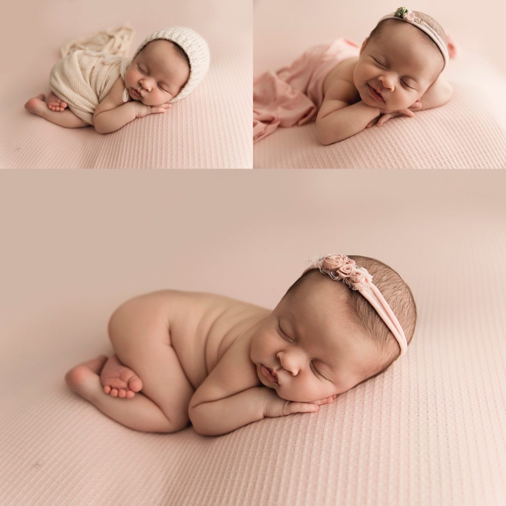 We did a blush, cream and pink setup for her session. She looked beautiful in all of it.